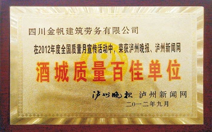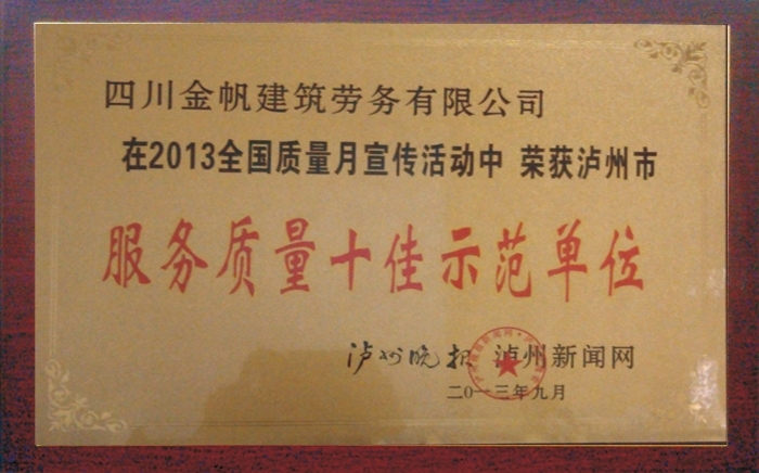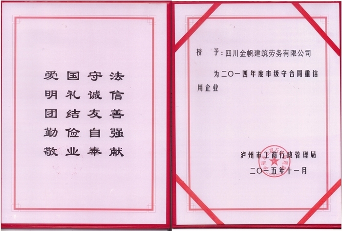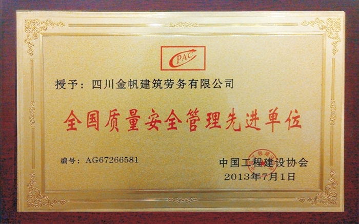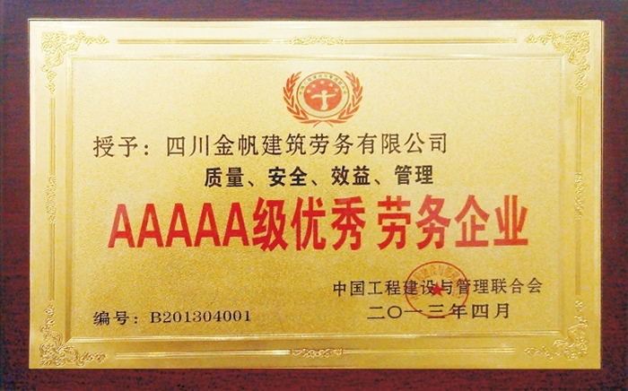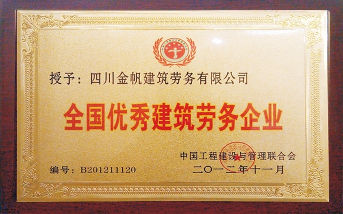 金帆全國優(yōu)秀建筑勞務企業(yè)